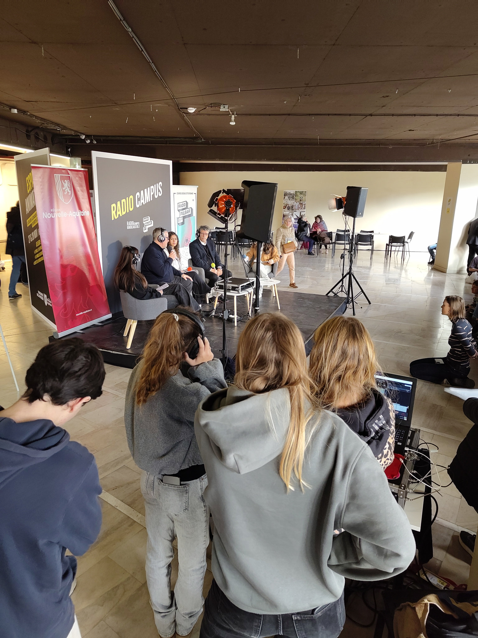 Pulsar a initié plusieurs groupes d’élèves du lycée Pape Clément de Pessac et du lycée Edmond Perrier de Tulle aux coulisses de la radio. Après 1h d’atelier où ils ont écouté et décrypté les techniques de base de l’interview radio, ils se sont lancés dans l’écriture des questions, avant d’interviewer, en conditions du direct et en public, plusieurs personnalités.