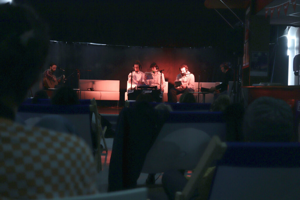 Bruitages en direct, récit intérieur à trois voix, création audio originale de Pulsar, accompagnement musical…